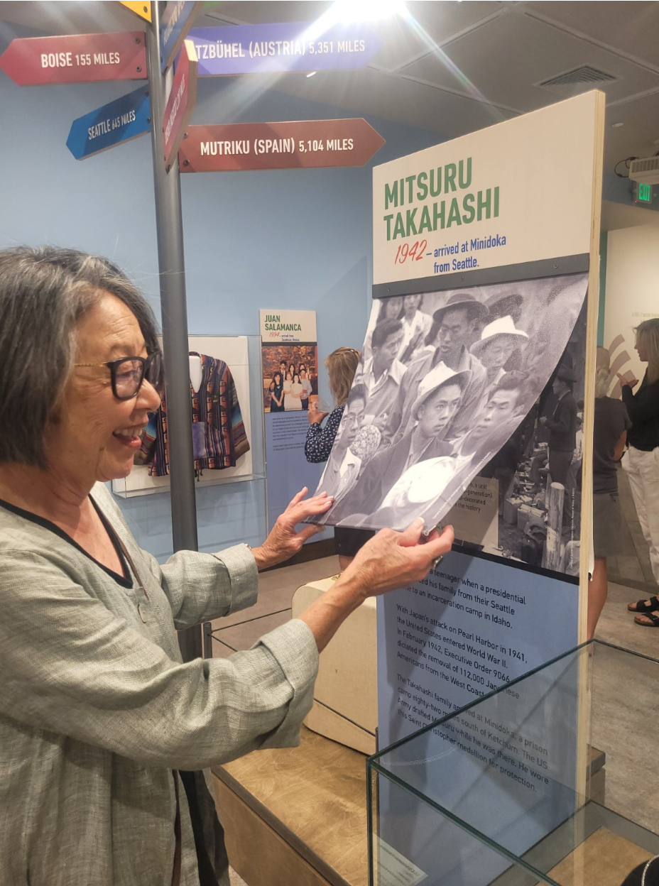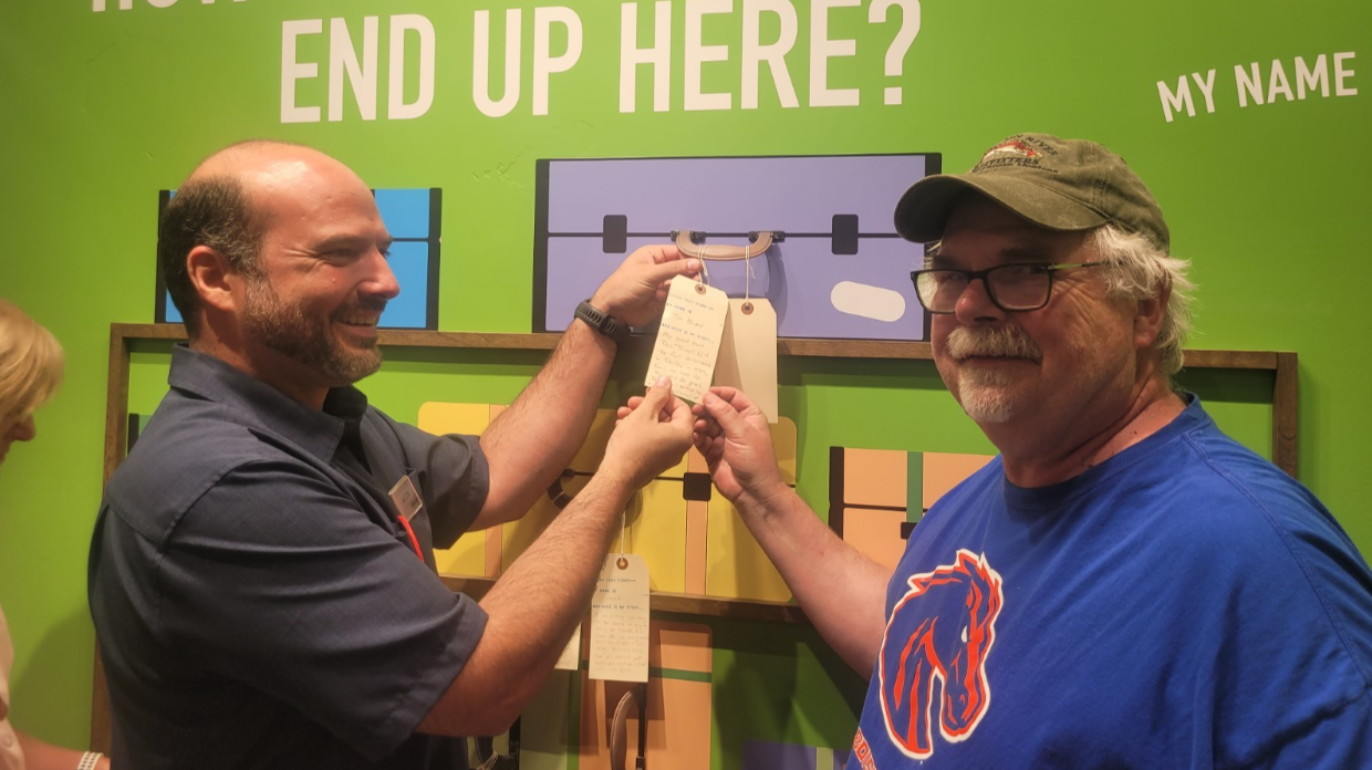 The FRAME design team inspired ways for the exhibit to be interactive. Each profile includes a flip panel to encourage tactile engagement with each individual’s story, and a large-scale lenticular panel encourages viewing the exhibit from multiple perspectives and invites consideration of the many reasons people may make the journey to Central Idaho. A “talk-back station” has proved to be very popular: each visitor is invited to write their own journey story on a luggage tag and add it to the exhibit.