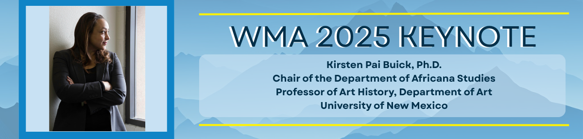 The Western Museums Association (WMA) is pleased to introduce this year’s WMA 2025 Keynote Speaker Kirsten Pai Buick, Ph.D., Professor of Art History, Department of Art and Chair of Africana Studies at the University of New Mexico!